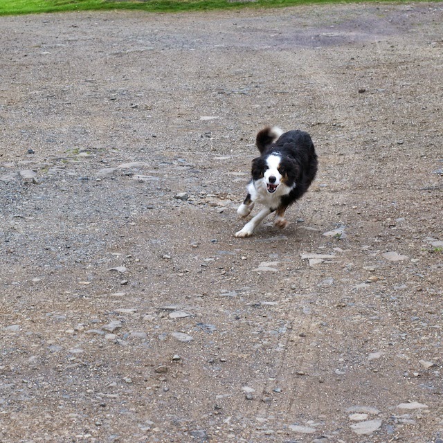 The dogs are always interested in the lambs. Walter wants to lick them.
