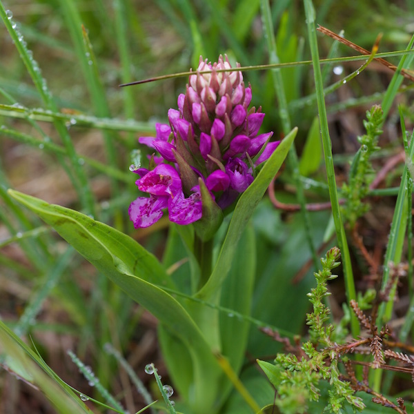 We walk the dogs before breakfast. I drop to my knees to look at the drops, on Silverweed, Birds foot Trefoil, Heath bedstraw and other little beauties flowering the Black Park. The Fragrant orchids are beginning to show but nothing in full flower yet.