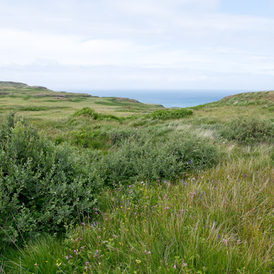 The Lady's bedstraw is flowering on the turf dykes along with Heath bedstraw and Wood sage.